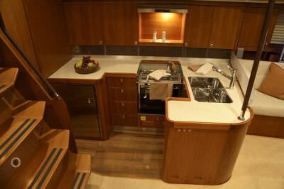 The semi-deck salon opens out into a voluminous space, with overhead and side panoramic windows providing welcome natural light and an excellent view. The galley is very spacious and excellently equipped, as well as a very elegant and modern lounge area. There are 5 cabins and 5 toilets. The vast cockpit area provides excellent comfort. Two steering wheels offer the perfect position for the helmsman.